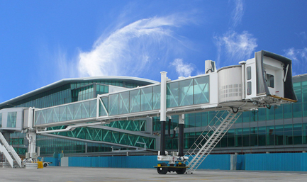 A380登機(jī)橋二層U1超高艙門而設(shè)計(jì)的登機(jī)橋,采用了行業(yè)內(nèi)首創(chuàng)的四輪驅(qū)動行走機(jī)構(gòu)及其控制系統(tǒng)。